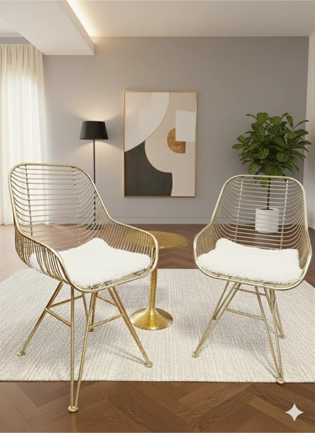 Modern Wire Chairs with accent table