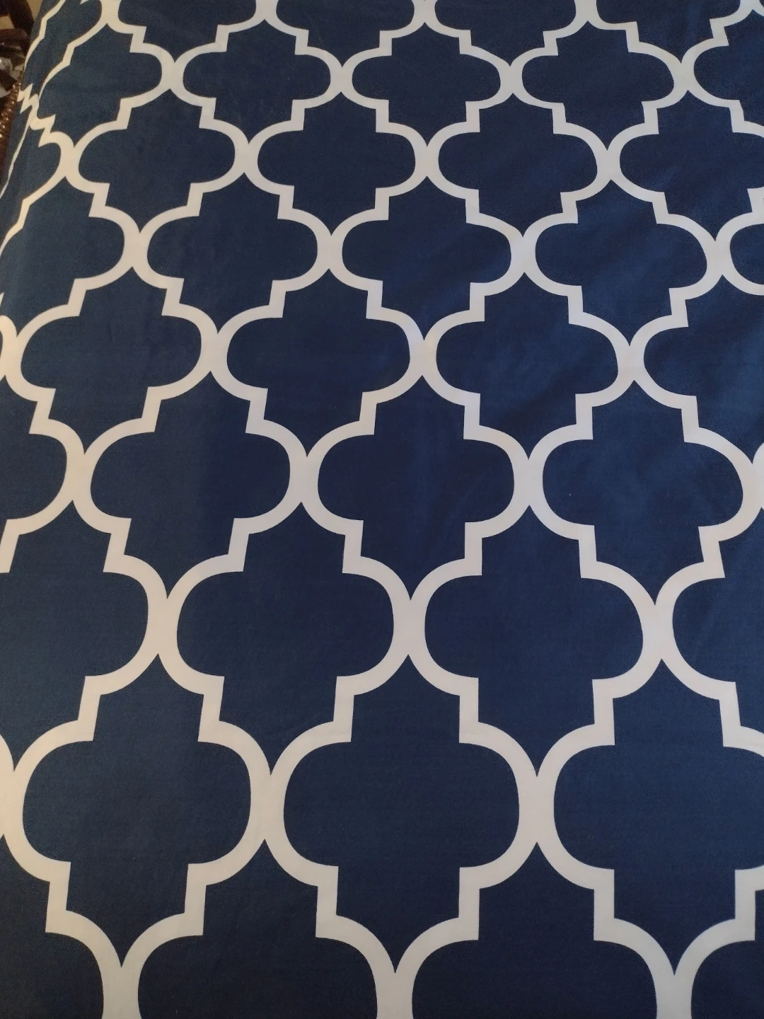 Here's a queen duvet cover with a beautiful navy and white pattern! It's in great condition and would add a nice touch to any bedroom. Lightweight duvet cover or use fabric for sewing projects.