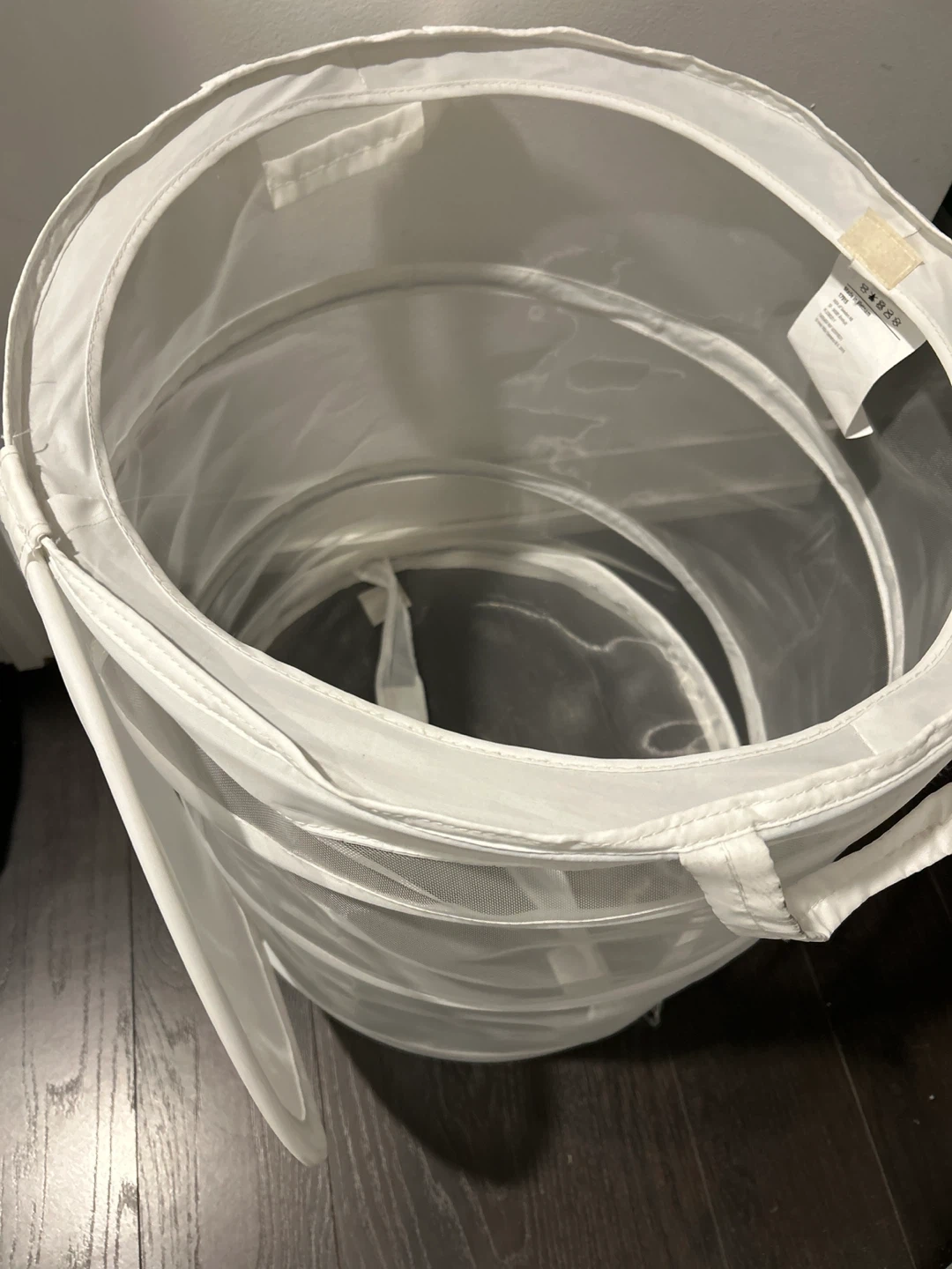 Selling a handy white pop-up laundry hamper! It's in great shape and perfect for small spaces. Folds away easily for storage when not in use, making it super convenient