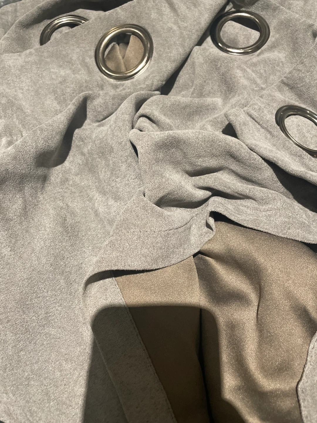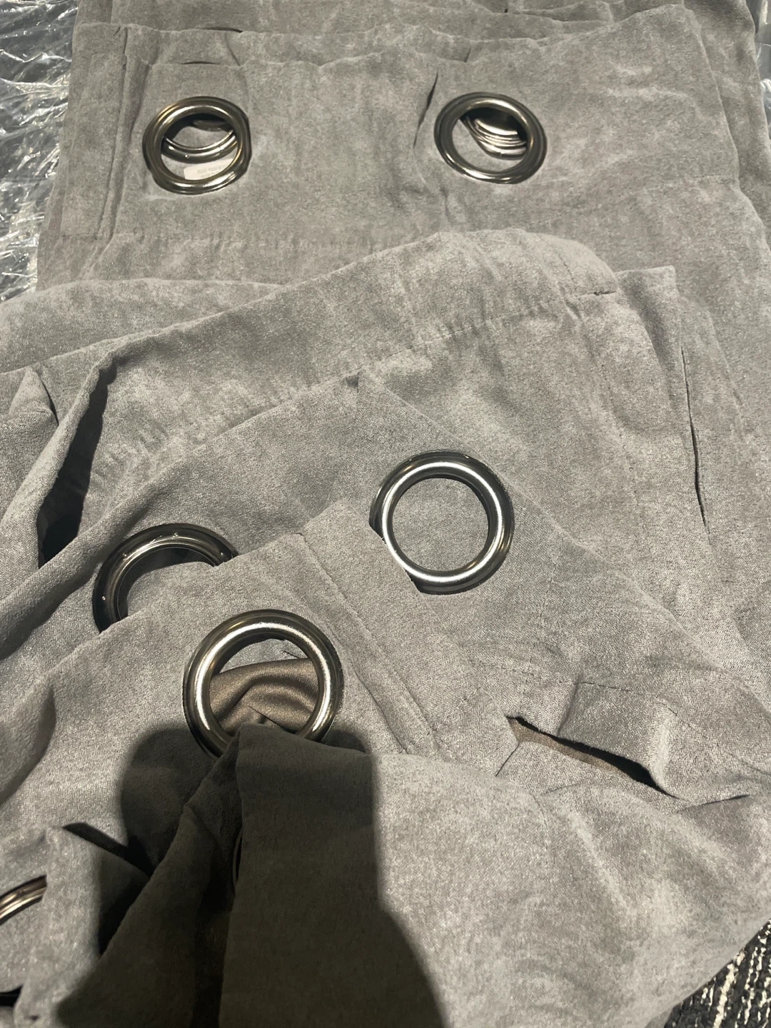 Selling a pair of grey velvet curtains. They're in good condition and would look great in any room! The curtains have grommets at the top for easy hanging.
