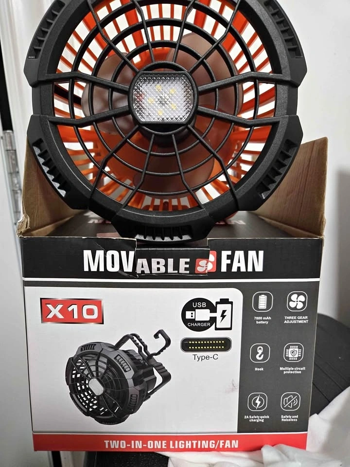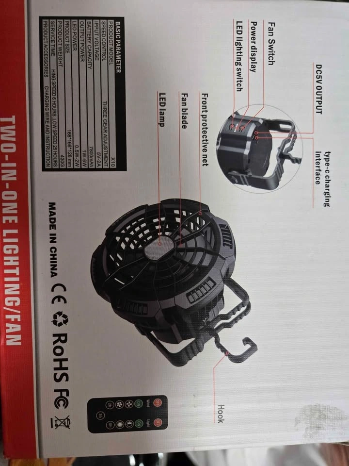 The battery powered fan is designed to incorporate a cooling fan, a high lumen camping light and a large capacity emergency power supply. Perfect for camping, hiking, adventure, hunting, home, office, garage, power outages, storms, repairs, factories, hurricanes, car trips, barbecues, gardens' party and other indoor & outdoor activities. This tent fan has 3 fan speeds and 3 brightness settings to meet your different needs. Not only can it be operated through the buttons on its body, but it can also be operated simply and conveniently through the infrared remote control. You can also remotely set a 2/3/5 hour timer when you want to rest or sleep. This cordless camp fan for tents has a built-in rechargeable 5200mAh Lithium battery that can be charged with a USB cable (included) via a laptop, car charger, mobile charger,etc.