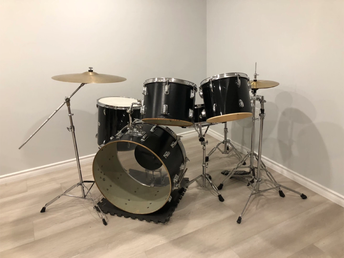 Note: the black wrap on the bass drum and 14” tom was not done well by previous owner (see photos 5, 6)… but they still have a huge sound.