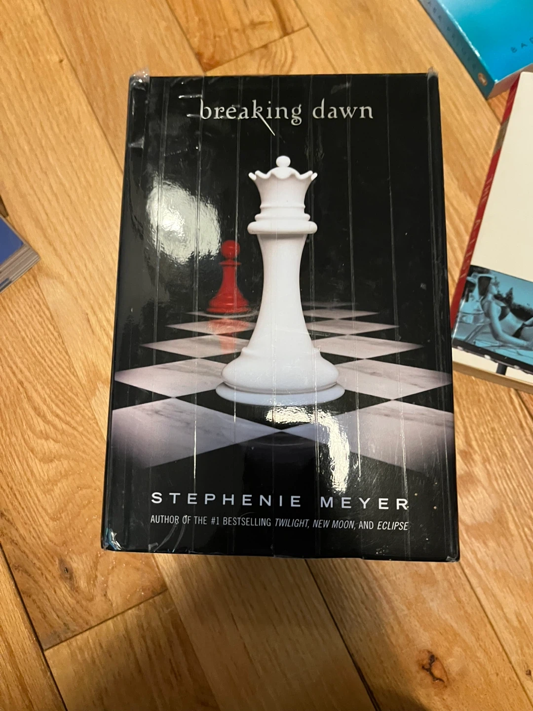 Selling Breaking Dawn from the Twilight Saga by Stephenie Meyer! It's in great condition and ready for a new reader. This book is part of the popular series that includes Twilight, New Moon, Eclipse, and Breaking Dawn. It's a captivating read!