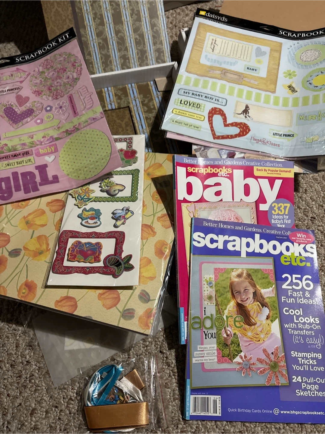 Selling a collection of scrapbook supplies with a baby theme! Includes kits, magazines like 'Better Homes and Gardens scrapbooks etc. baby', and embellishments to make adorable baby scrapbook pages. Perfect for documenting those precious first year memories
