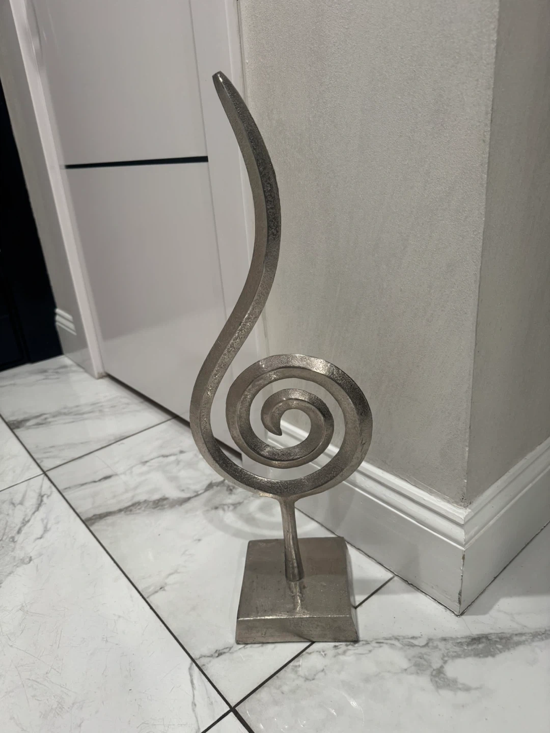 Buy & SellSilver Metal Swirl SculptureSilver Metal Swirl Sculpture$15Selling a silver metal swirl sculpture. It's a unique piece that would look great as a decorative item in any roomConditionLike newWHERE TO MEETCheck LocationView MapSELLERRachelGravesend181 review0 chats·1 favorites·18 viewsSEND CHAT TO SELLERHi Rachel! I’m interested in your listing.Hi Rachel! I’m interested in your listing.Get the Karrot app to chatSign In to chat
