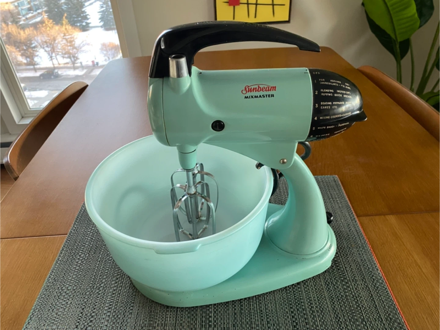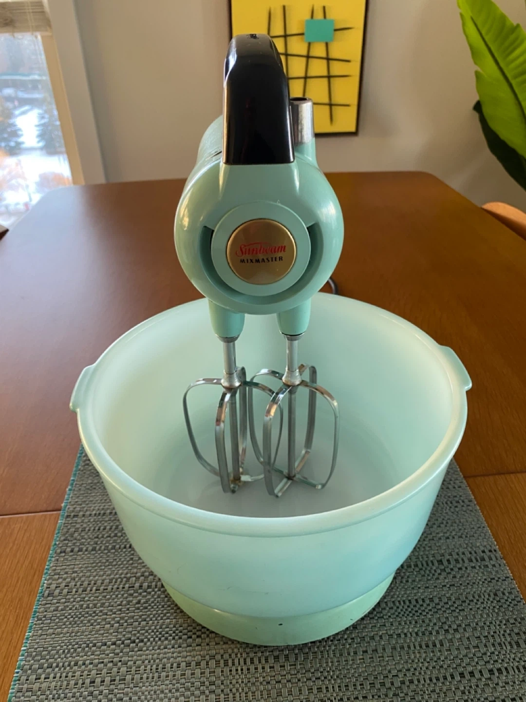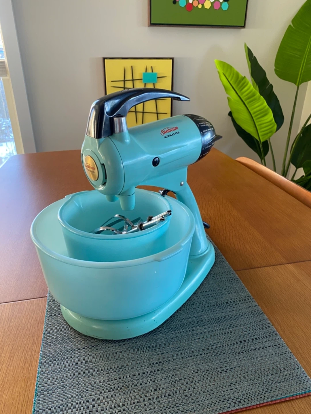 Buy & SellVintage Turquoise Sunbeam Mixmaster Mixer with BowlsVintage Turquoise Sunbeam Mixmaster Mixer with Bowls$751950s Sunbeam Mixmaster with 2 original Glassbake bowls. Good condition. A few minor chips. Works great!ConditionGoodBrandSunbeamWHERE TO MEETBeltlineView MapSELLERverifiedJeffBeltline761 review0 chats·10 favorites·105 viewsSEND CHAT TO SELLERHi Jeff! I’m interested in your listing.Hi Jeff! I’m interested in your listing.Get the Karrot app to chatSign In to chat