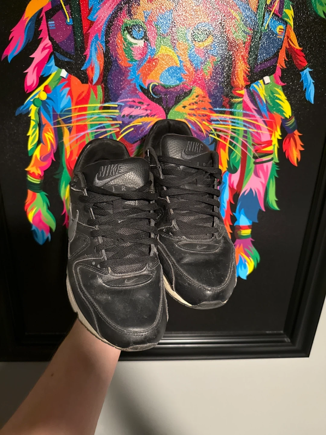 Selling a pair of Nike Air Max ST sneakers in black. They've been worn, but still have lots of life left! Great for everyday wear or hitting the gym. Please take a look at the pictures for the condition.