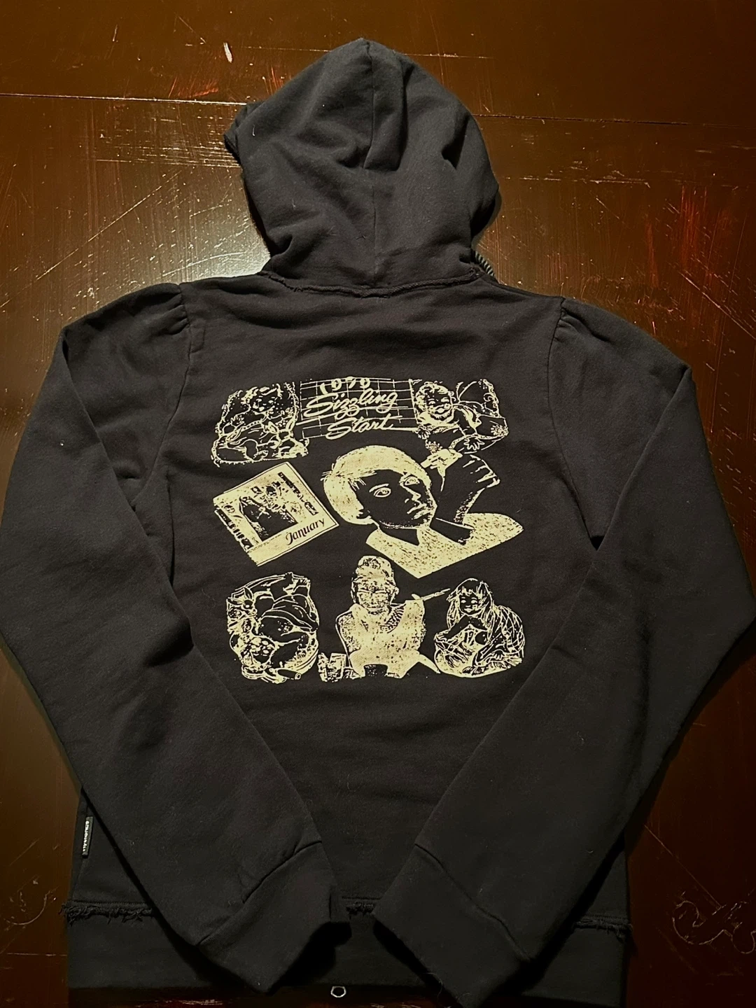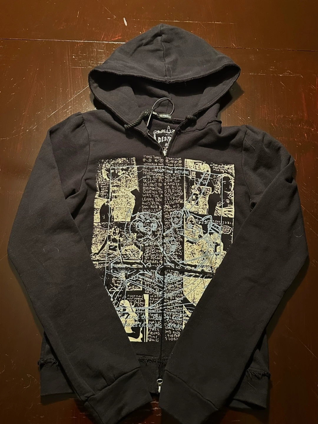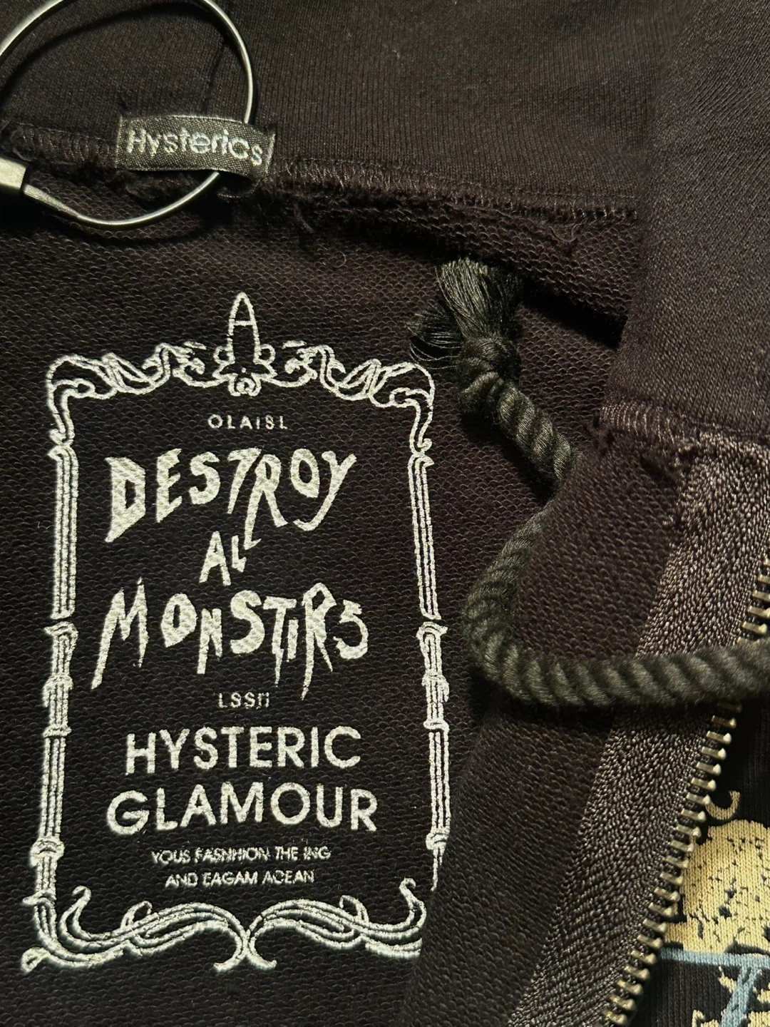 Rare graphic zip-up hoodie featuring the “Destroy All Monsters” artwork on the front. Black color, full zip, and adjustable hood. Good condition with no major flaws. Soft, comfortable, and perfect for streetwear or collectors of Hysteric Glamour pieces.