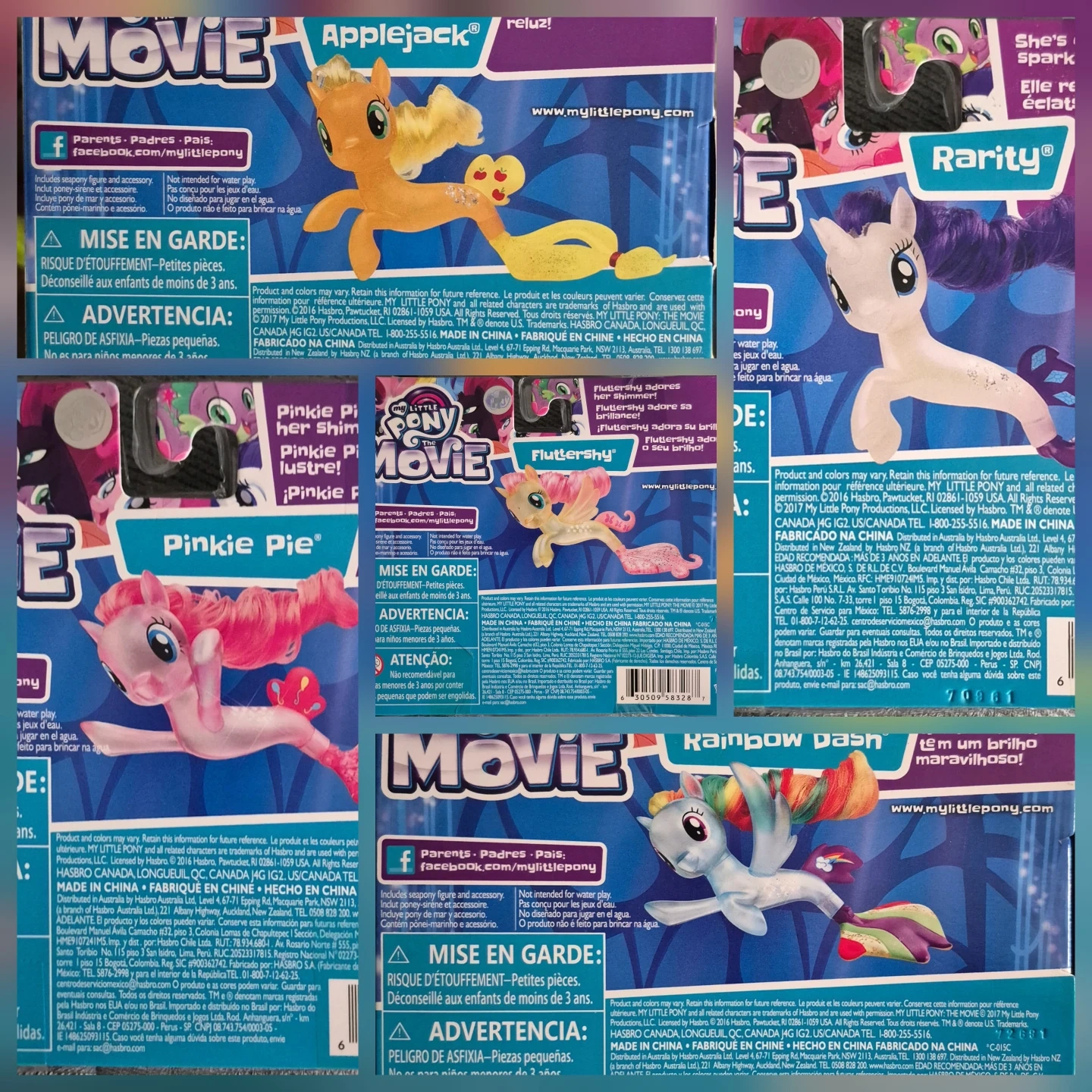 Selling a set of My Little Pony: The Movie Seapony figures! The set includes Applejack, Fluttershy, Rarity, Pinkie Pie, and Rainbow Dash, all new in their original packaging. Perfect for collectors or kids who love My Little Pony