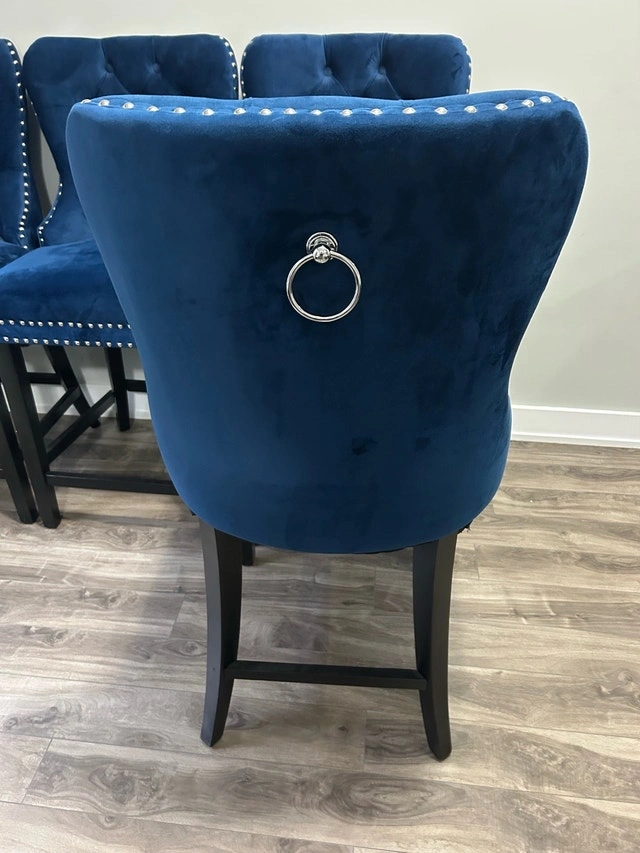 Add a touch of elegance to your kitchen or bar area with these beautiful blue velvet bar stools.