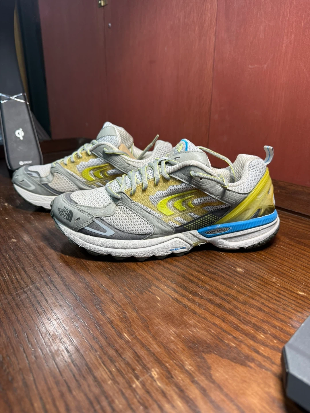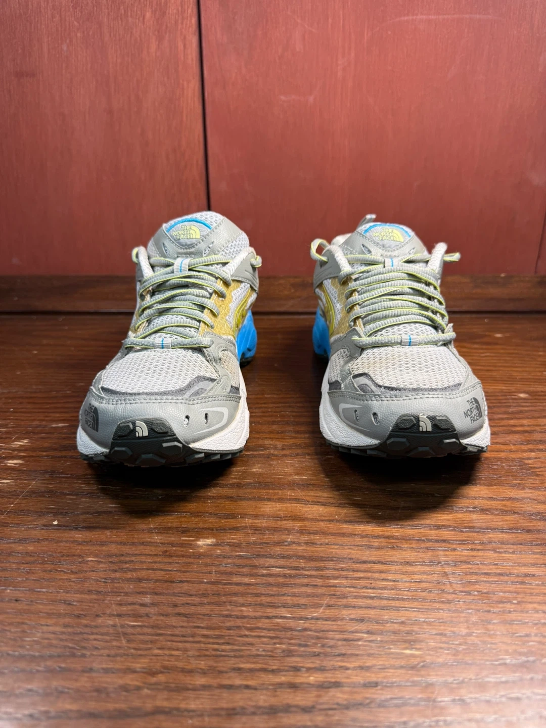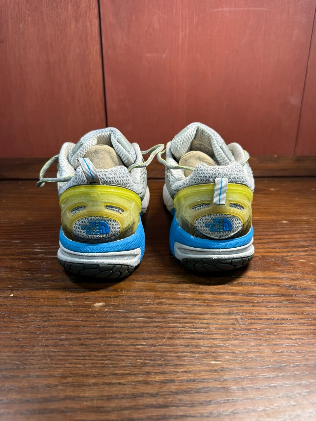 Get ready to hit the trails with these used The North Face Double-Track running shoes, designed for women and perfect for any outdoor adventure. These shoes come in size 8.5 US, providing a comfortable fit for your runs.