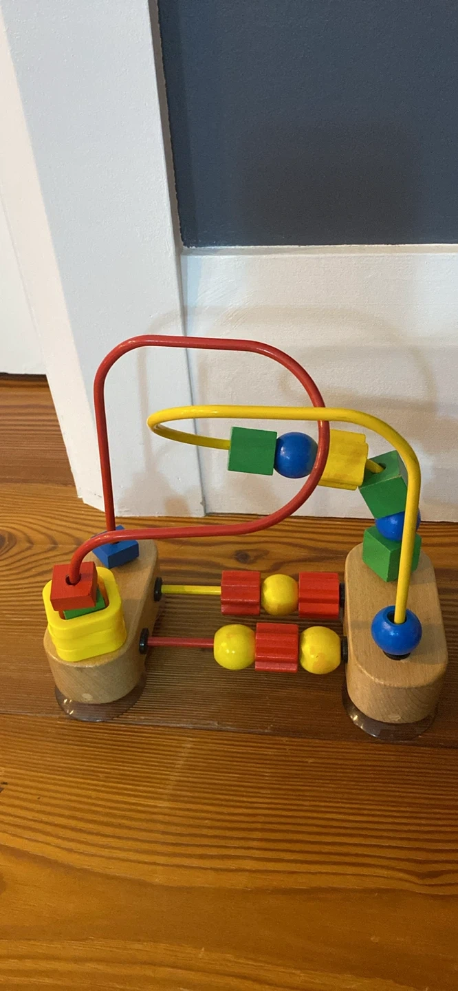 Here's a fun wooden bead maze toy! It features colourful beads and shapes that kids can slide and move around. Great for developing fine motor skills and hand-eye coordination