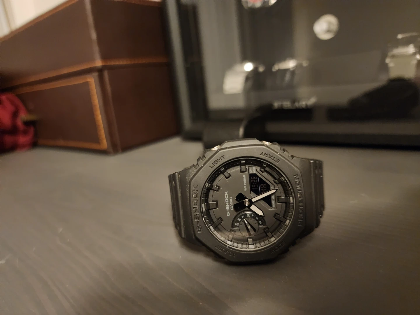 Selling a Casio G-Shock GA-2100 CasiOak Stealth watch in excellent condition! It features a carbon core guard structure and is water resistant to 20BAR. The watch can come with the original box but that would be delivered after the holidays (need to pick at parents place)