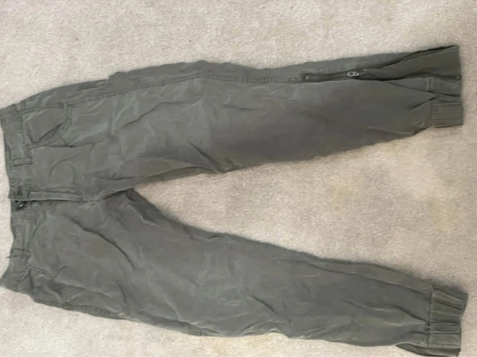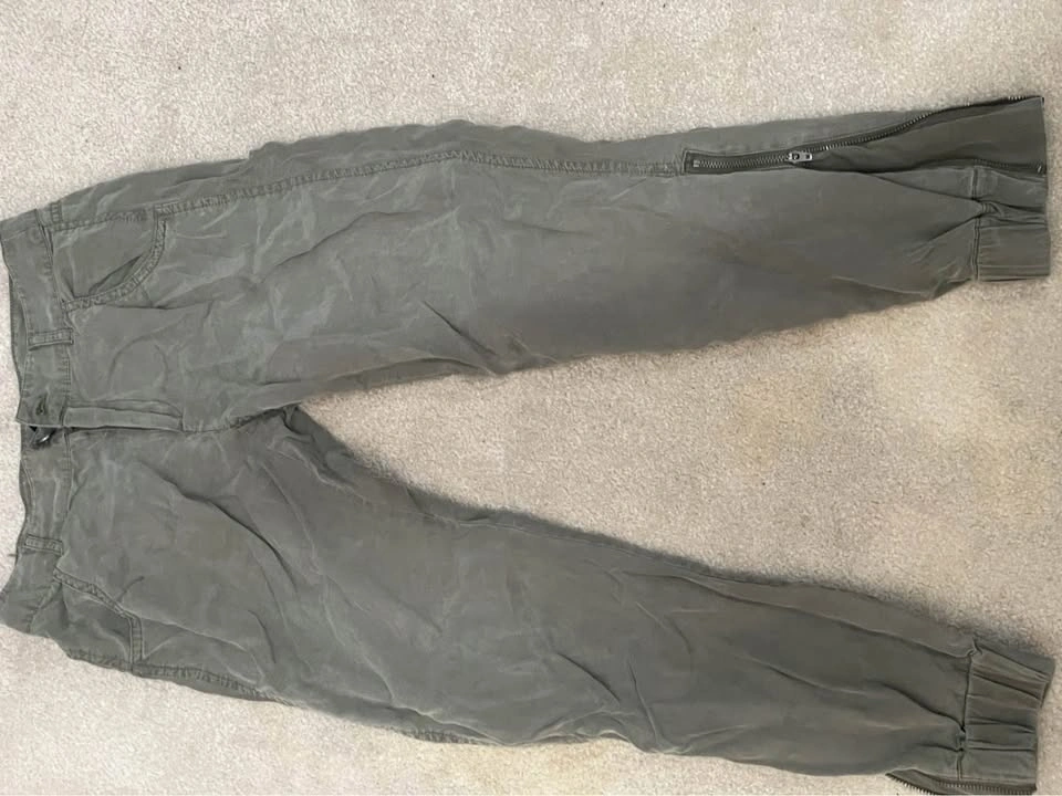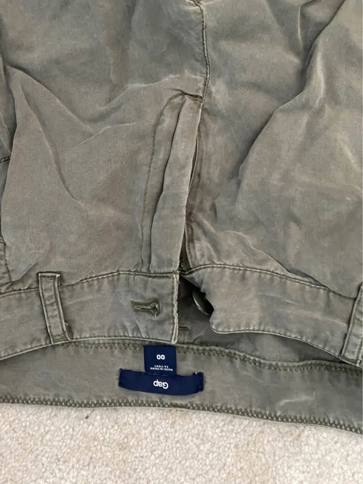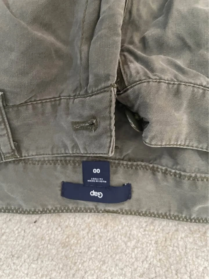 Comfy and versatile GAP olive green jogger-style pants, great for casual wear or travel.