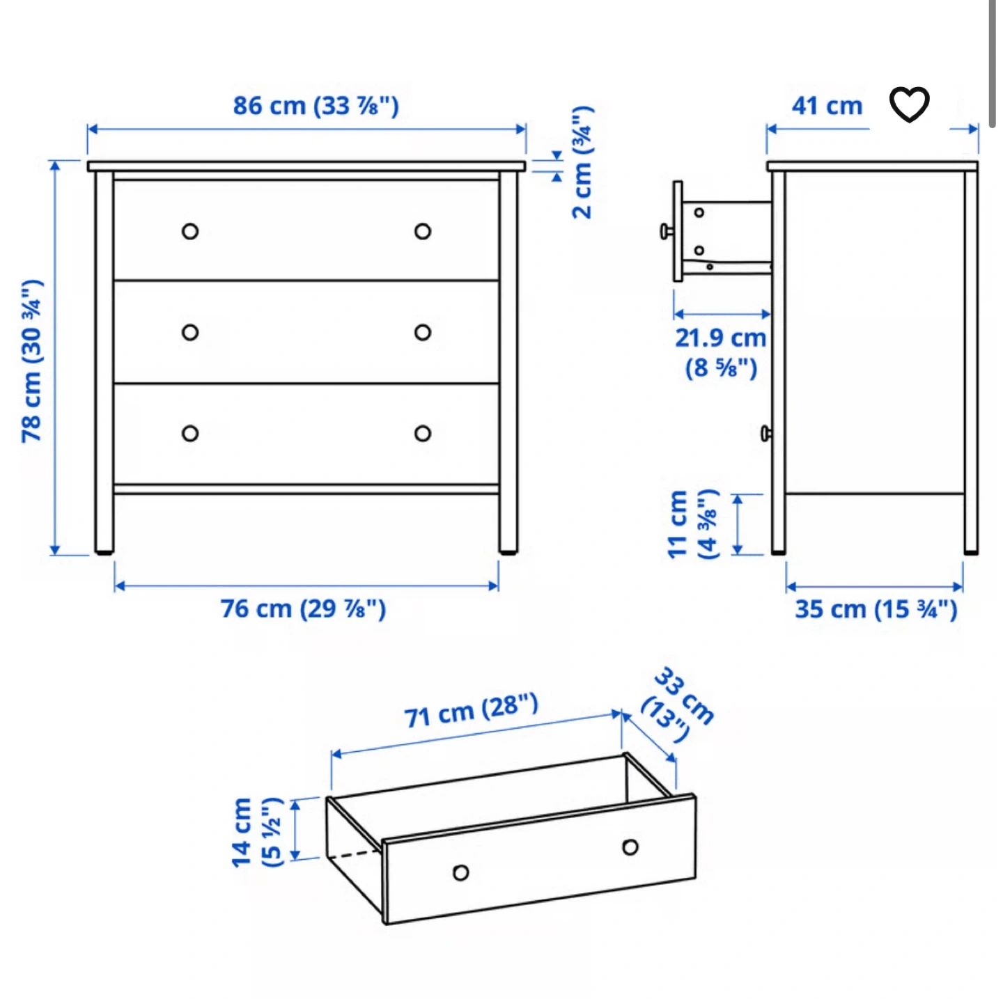 IKEA Dressers Kilberget 3-Drawer Chest - White