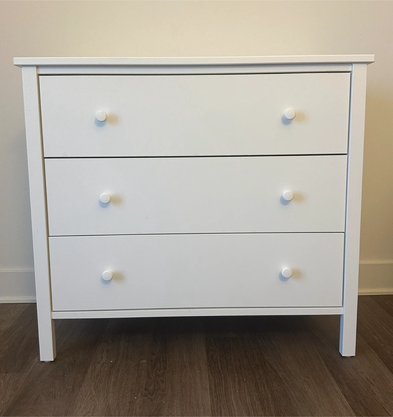 Selling a white IKEA Kilberget 3-drawer chest! It's in great condition and would be perfect for a bedroom or closet.