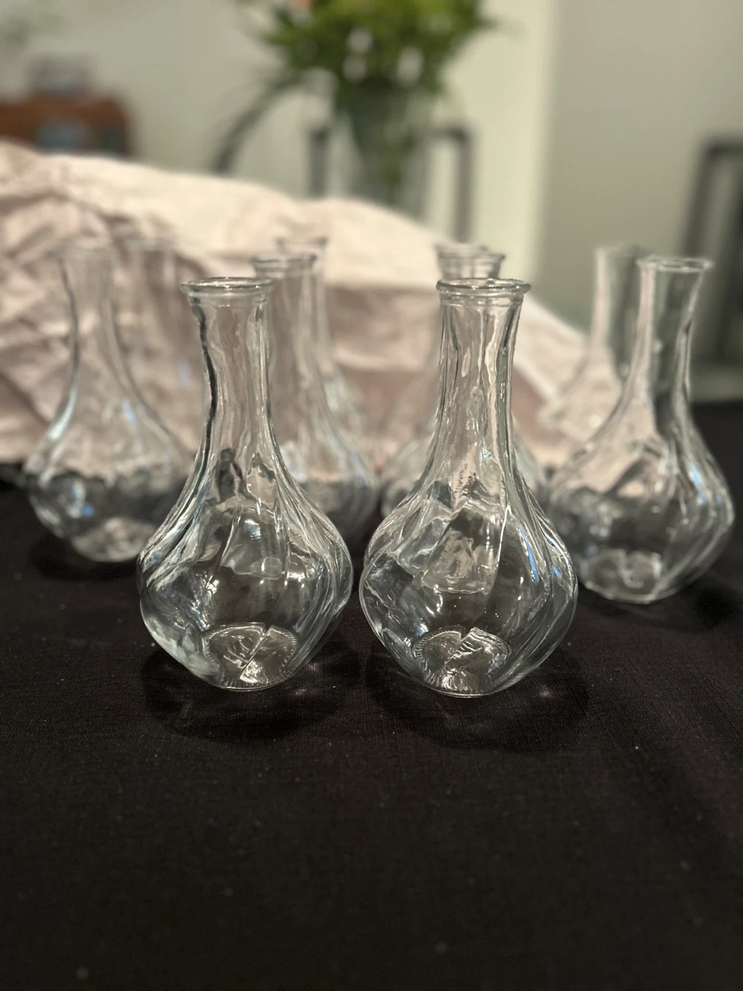Selling a set of 10 clear glass bud vases. They're in great condition and would be perfect for displaying flowers or adding a touch of elegance to any room! Used once for wedding. Not needed now.