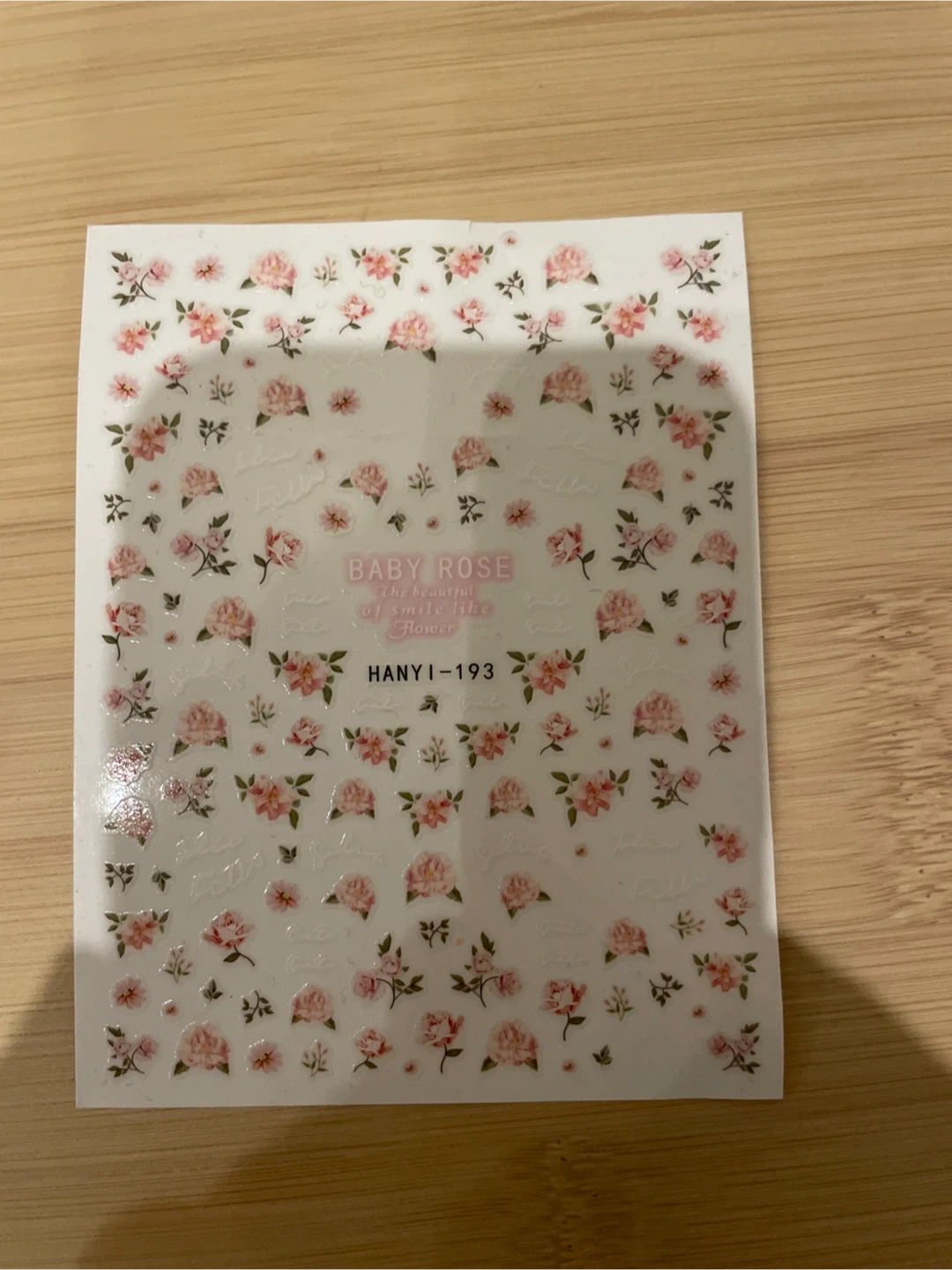 I'm selling a set of HANYI nail art stickers. You'll get a variety of floral and botanical designs to add a cute touch to your nails! There are five sheets of stickers in total, each with a different theme. Perfect for DIY manicures!