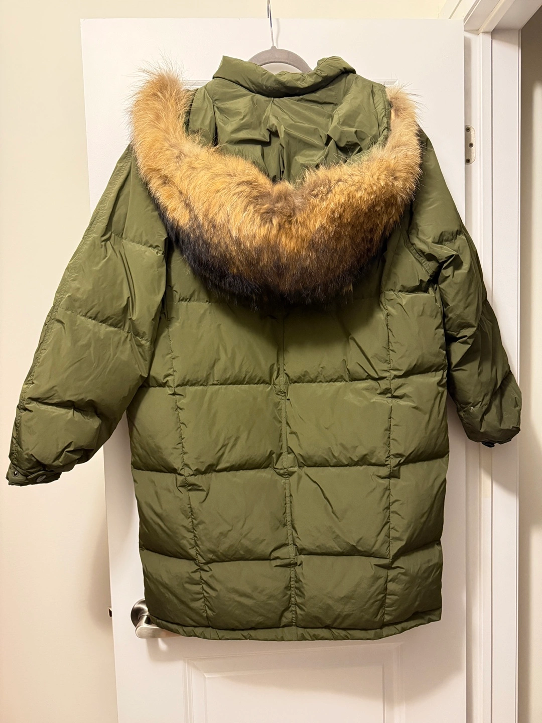 NANING9 Olive Green Padded Down Coat with real fur !!!