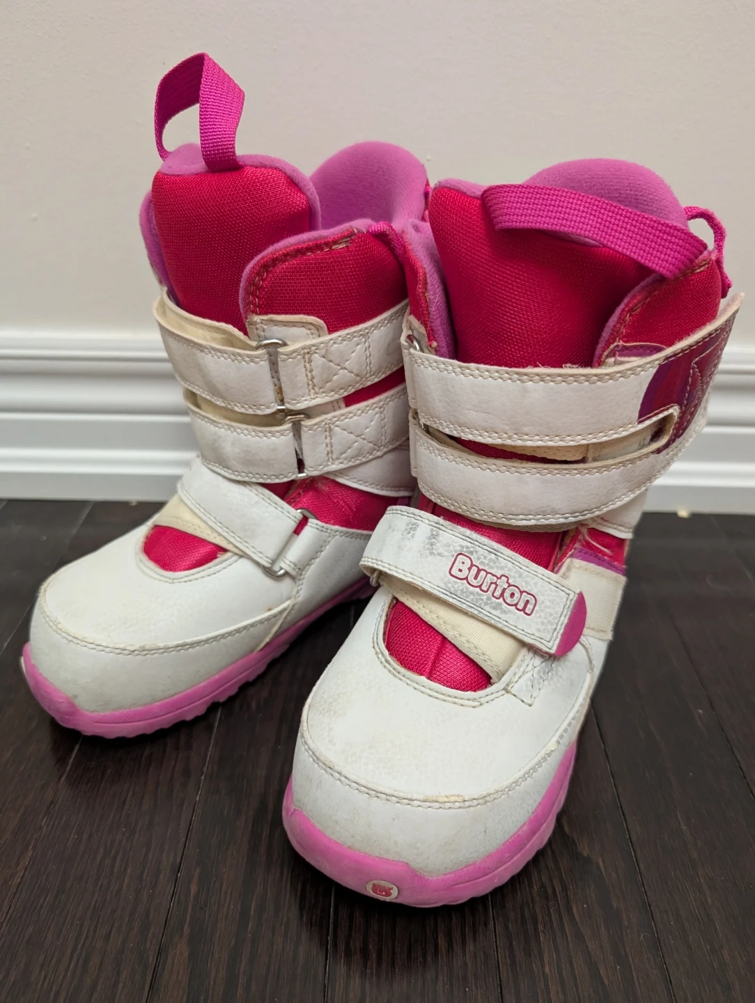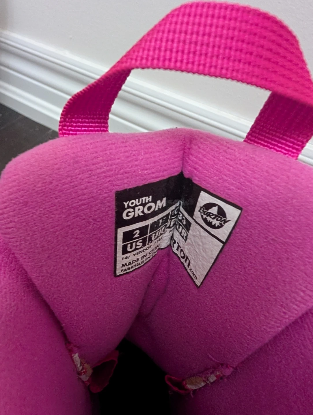 Selling a pair of Burton Youth Grom snowboard boots in US size 2. Used boots that are easy to put on and especially great for young beginners!