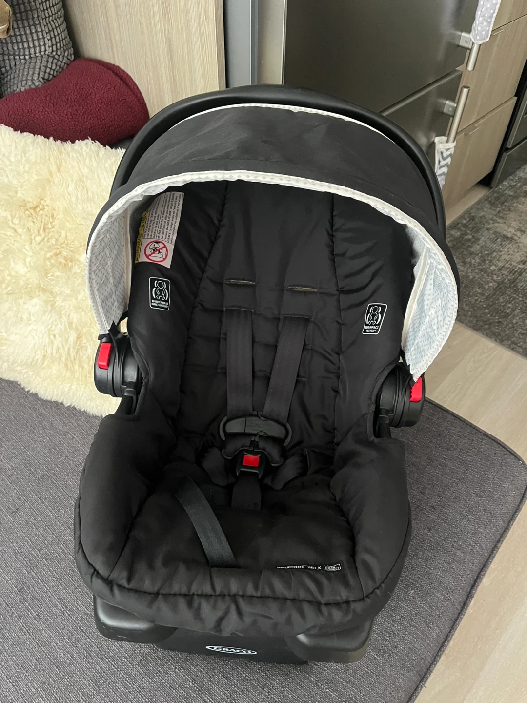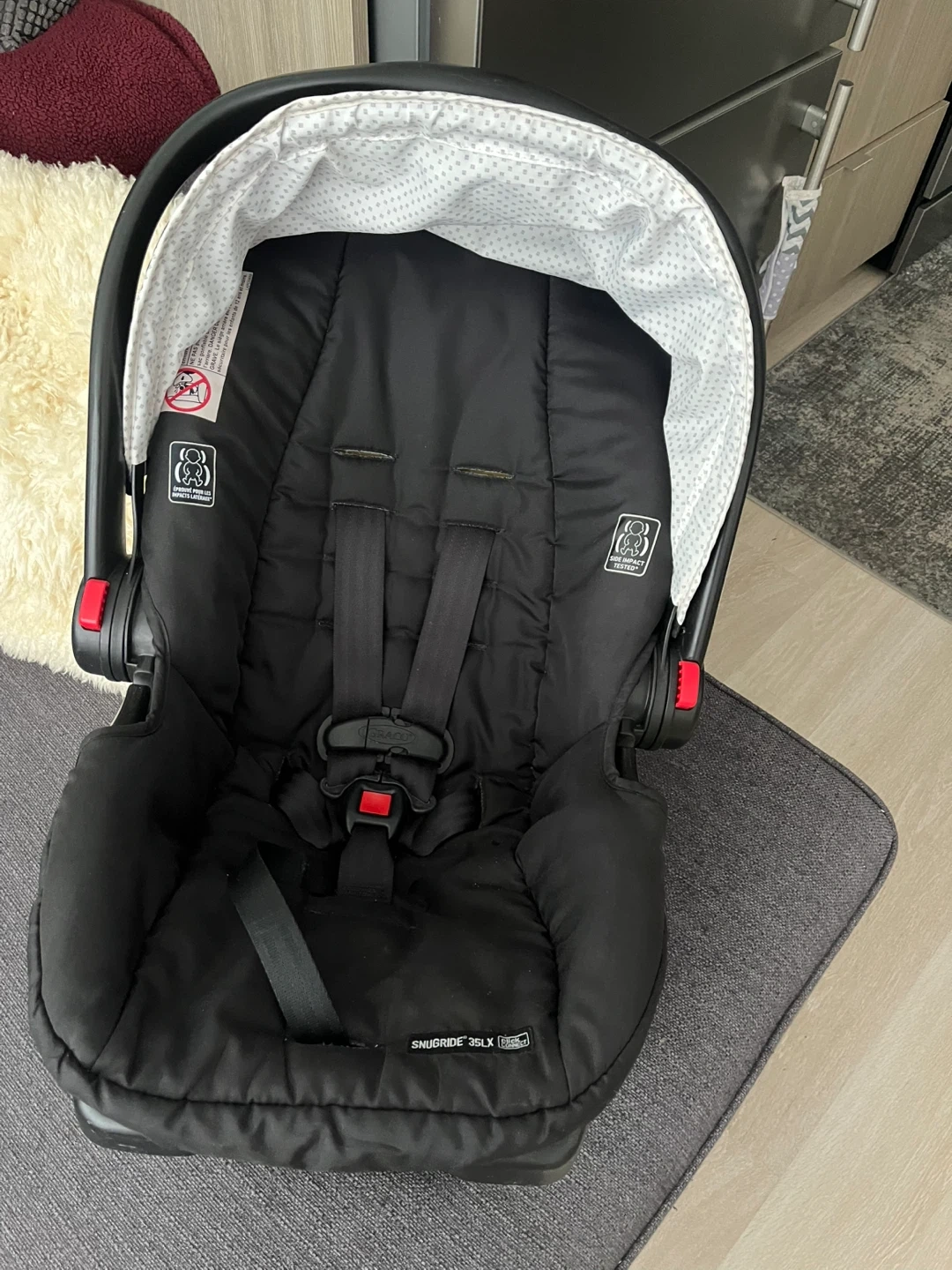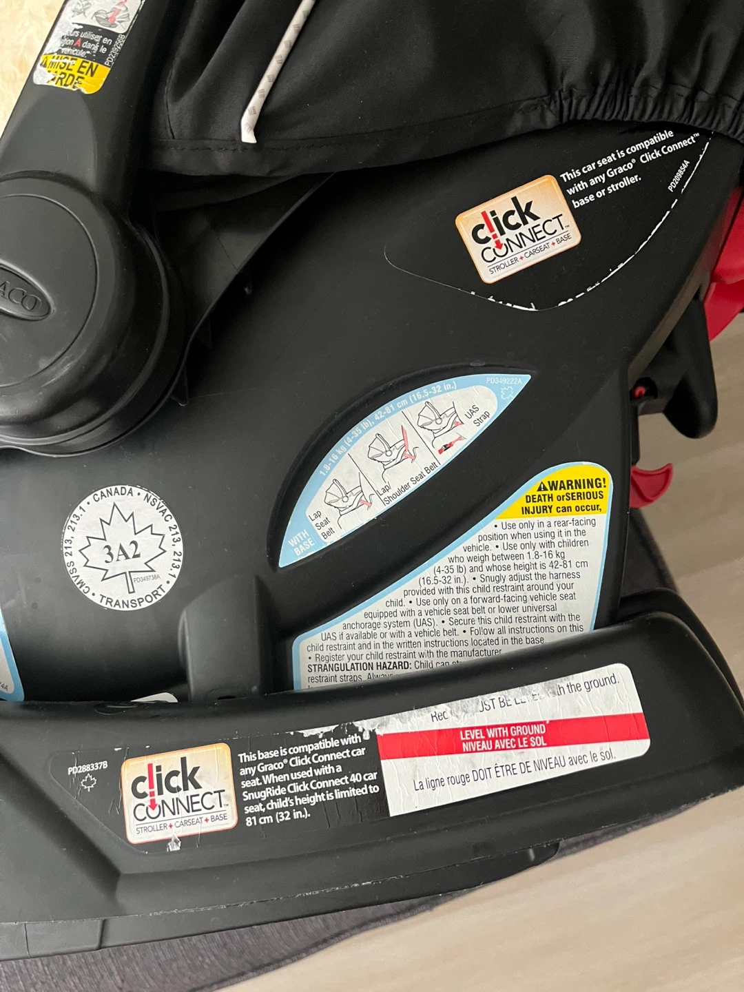 Selling a Graco Click Connect infant car seat. It's compatible with any Graco Click Connect base or stroller. It can accommodate babies who weigh between 1.8-16 kg (4-35 lb) and whose height is 42-81 cm (16.5-32 in).
