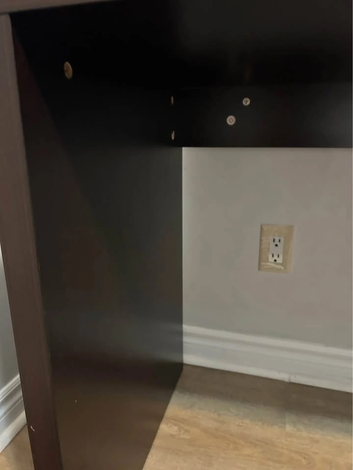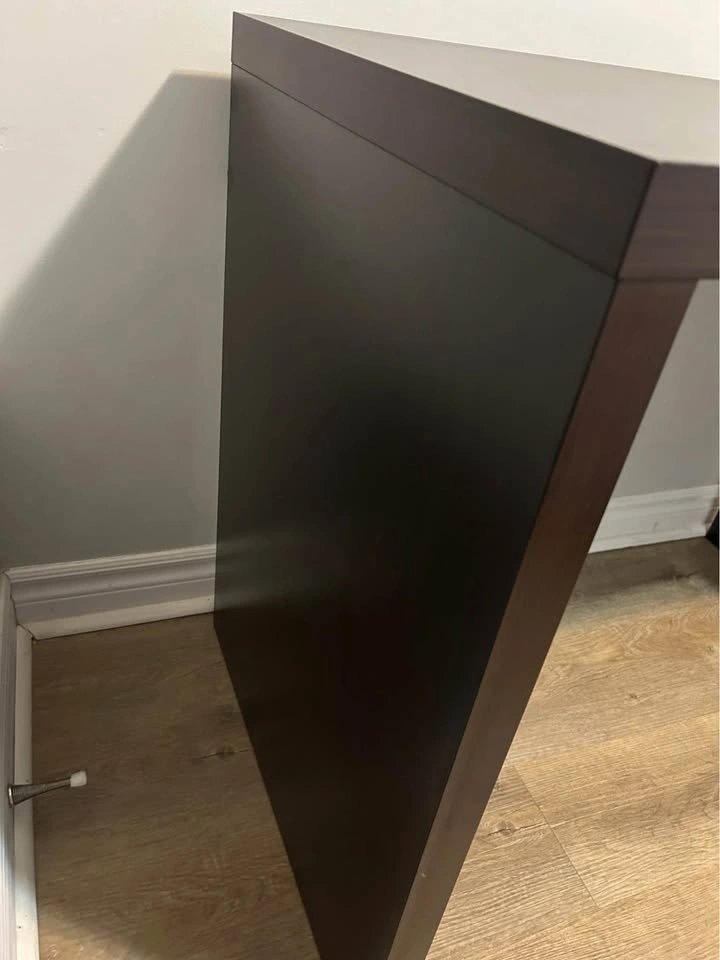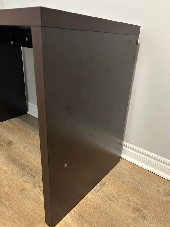 Dark brown office desk in used, like-new condition with barely any scratches.