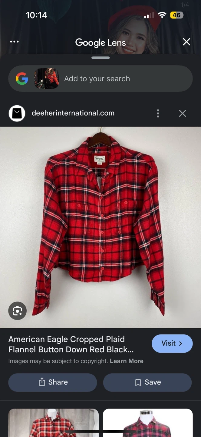 Selling an American Eagle cropped plaid flannel button-down shirt in red and black. It's a stylish and comfortable piece that's perfect for layering or wearing on its own!