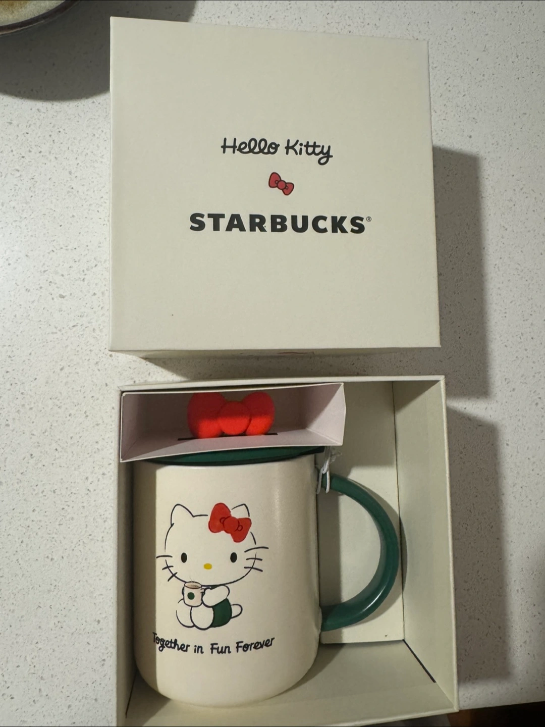 Selling a super cute Starbucks Hello Kitty mug! It comes with a matching lid and the original box. The mug features Hello Kitty holding a drink with "Together in Fun Forever" printed on it. Perfect for any Hello Kitty or Starbucks collector! Currently sold out in most GTA locations.