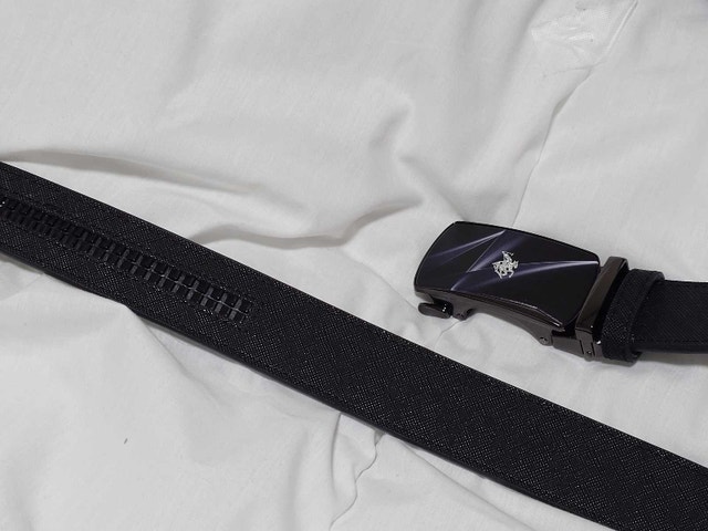This is a stylish Polo men's belt that features an authentic design with a sleek, automatic buckle, ensuring a secure and comfortable fit. Since it's not brand new, it has some wear and tear.