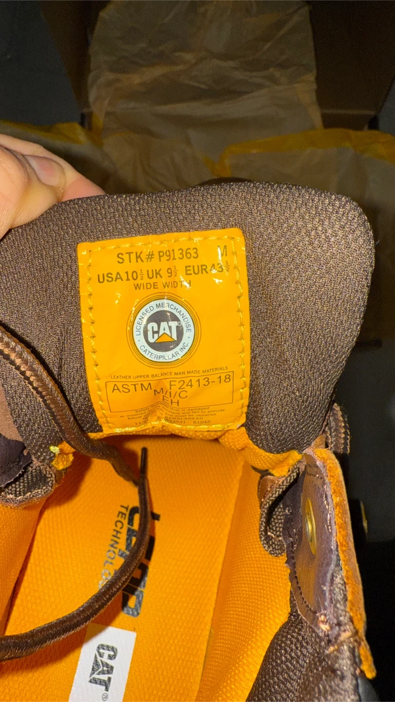 Buy & SellCAT Men's Leather Work Boots - Size 10.5CAT Men's Leather Work Boots - Size 10.5$80Here are some CAT work boots. They are a men's size 10.5. These are leather upper and man made material. The box is included.ConditionNewSize10.5BrandCATWHERE TO MEETCheck LocationView MapSELLERverifiedAdelindaConcourse1000+176 reviews1 chats·0 favorites·98 viewsSEND CHAT TO SELLERHi Adelinda! I’m interested in your listing.Hi Adelinda! I’m interested in your listing.Get the Karrot app to chatSign In to chat
