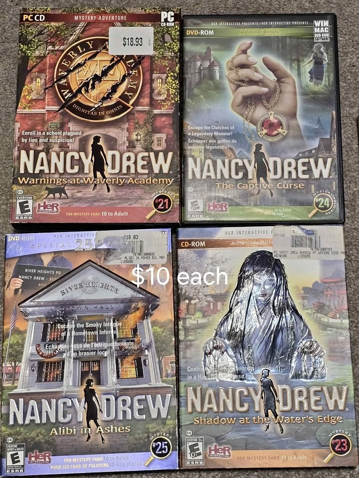 Classic Nancy Drew PC CD-ROM games in great condition. Perfect for collectors or fans of the series.