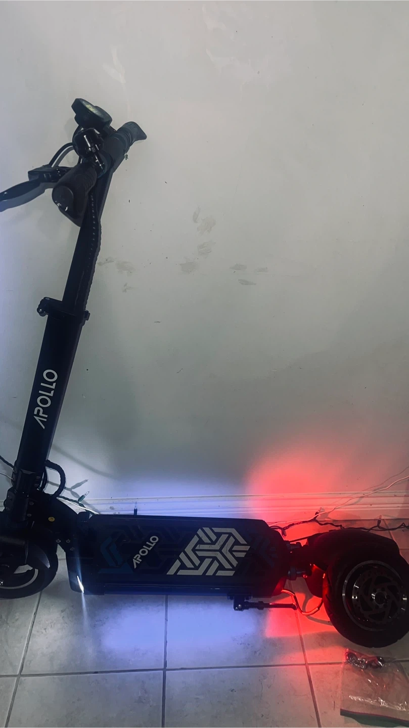 Selling an Apollo electric scooter. It just need some fixes like the stem handle is loose a bit which can be fix . Front brake is off and back brake need some fixes which is fixable and also the motor is in great condition and back inner tube tire is popped which is $20 off Facebook marketplace ( i took parts of it so you don’t gotta struggle)