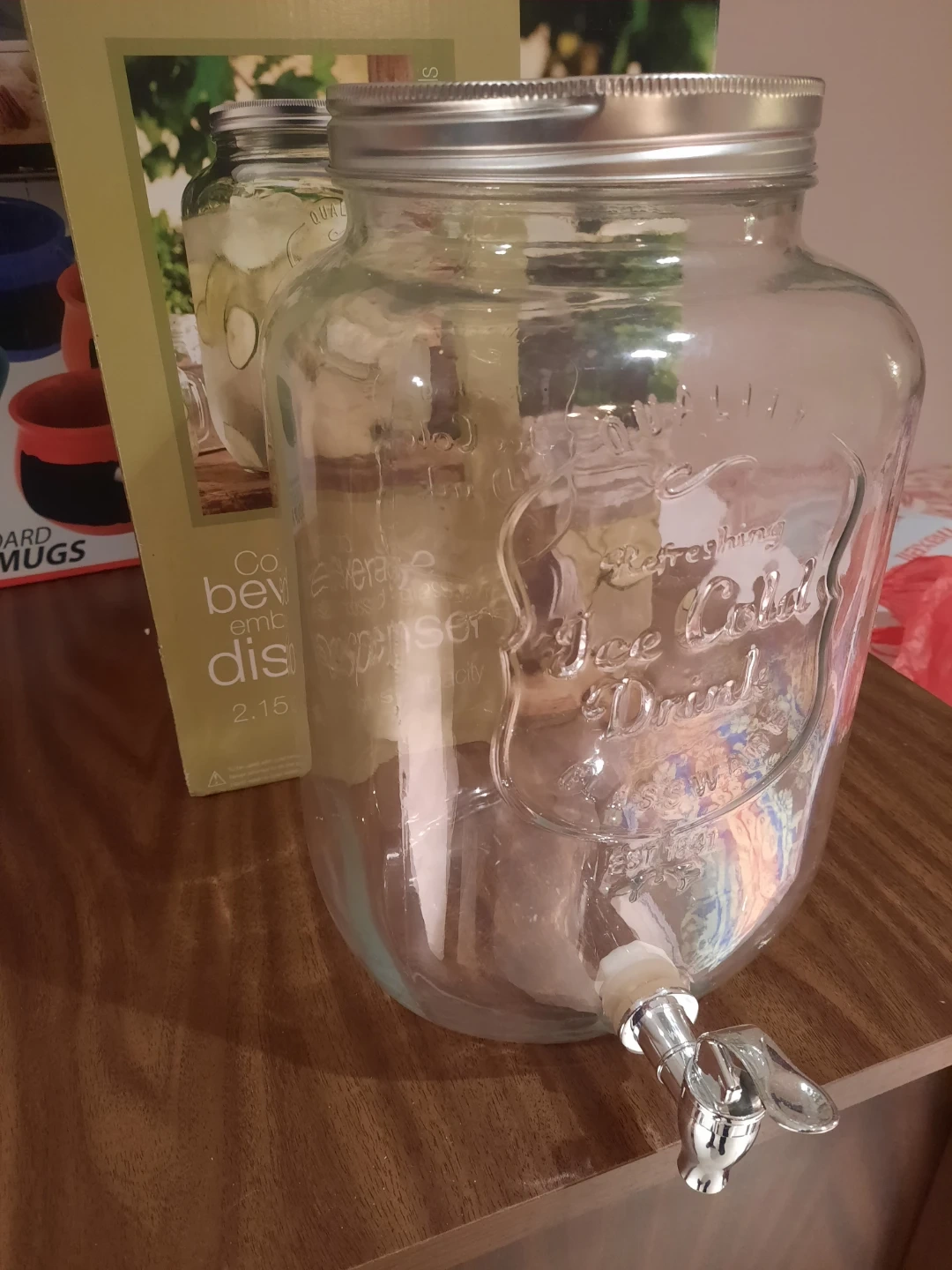 I have 2 Brand New Home Essentials Cold Beverage Dispensers. Holds 2.15 gallons/8 Litres each and are made of embossed glass. Perfect for serving refreshing ice-cold drinks! Comes in the original box.