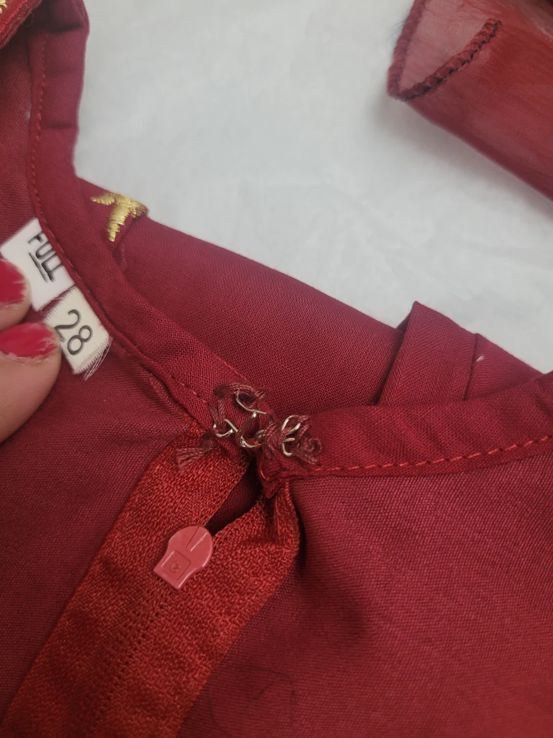 Buy & SellRed Embroidered Salwar Kameez - Size 28Red Embroidered Salwar Kameez - Size 28$32Selling a beautiful red salwar kameez with gold embroidery. It comes with a matching dupatta and pants. The size is 28. It will fit 6 to 10 years old ConditionNewTalla28WHERE TO MEETCheck LocationView MapSELLERverifiedhadiMilliken1376 reviews0 chats·0 favorites·38 viewsSEND CHAT TO SELLERHi hadi! I’m interested in your listing.Hi hadi! I’m interested in your listing.Get the Karrot app to chatSign In to chat