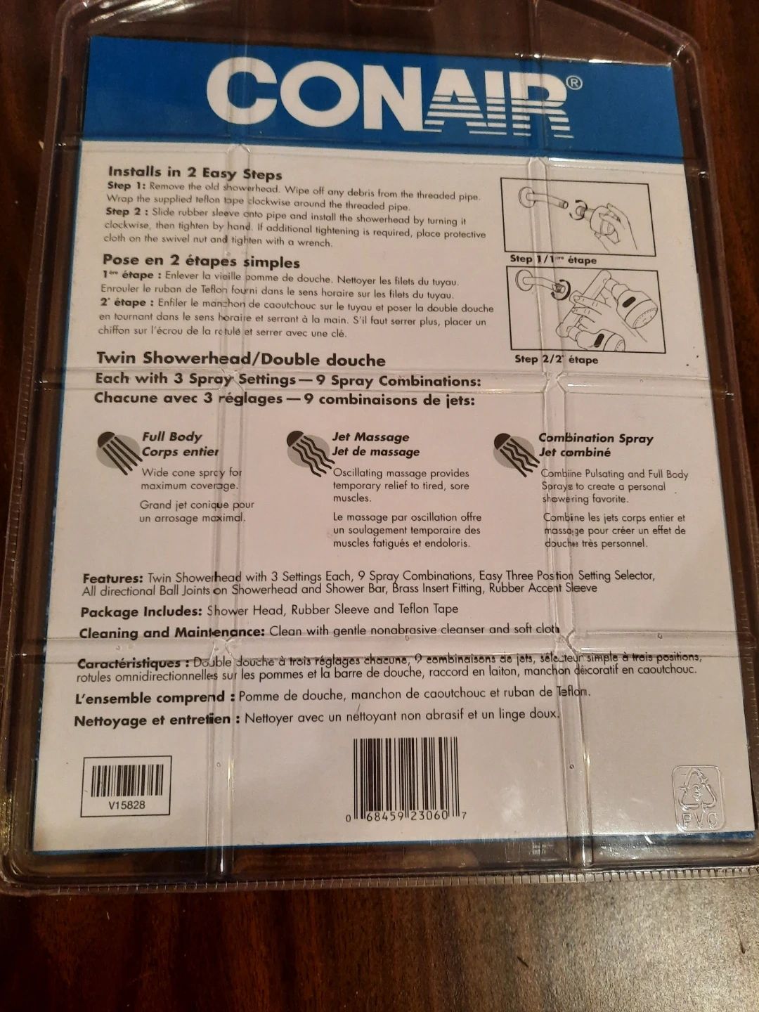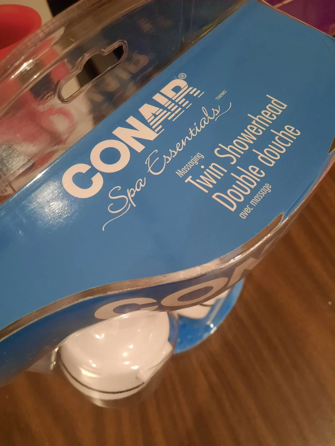 Selling a brand new Conair Spa Essentials massaging twin showerhead! It features three spray settings and nine spray combinations. It's an adjustable twin showerhead in white with an easy three-position selector and brass insert fitting! It also comes complete with Teflon tape.