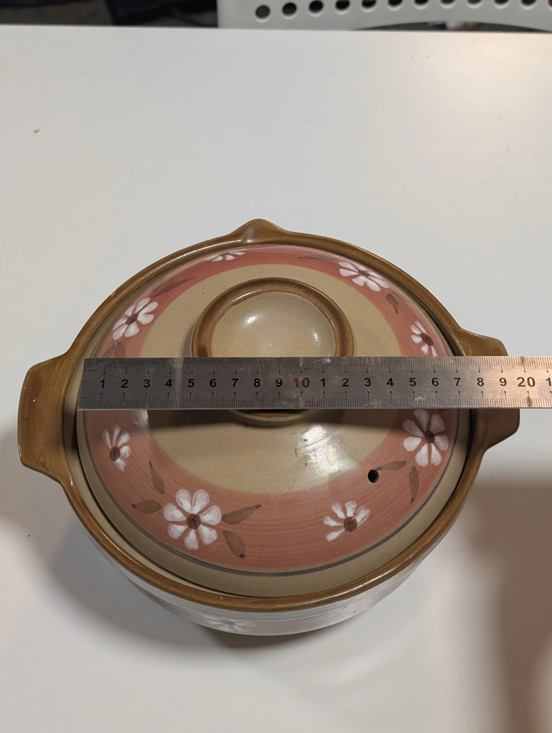 Selling a ceramic casserole pot with a cute floral pattern! It looks to be about 20cm in diameter. Perfect for making soups or stews for those chilly Canadian evenings