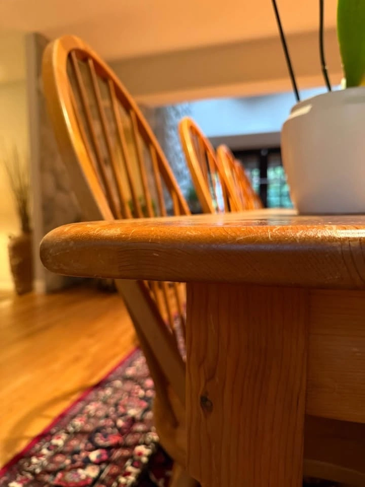 •Some wear on table top & chairs- so a light refurbishment would bring this dining table back to new condition.