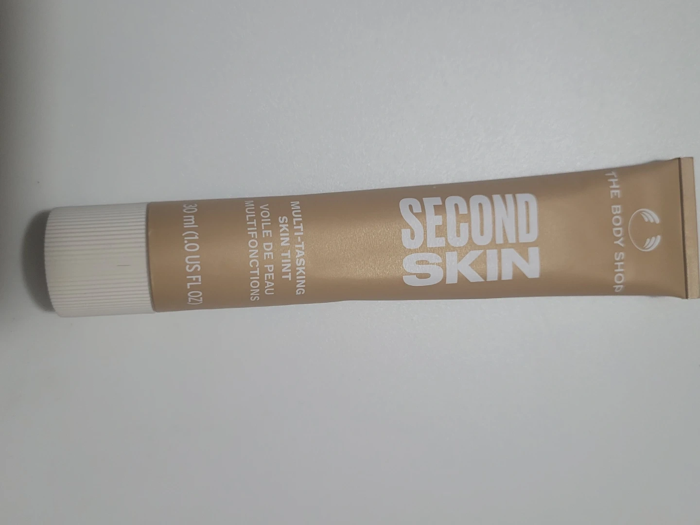 Selling a tube of The Body Shop Second Skin Multi-Tasking Skin Tint. It contains 30 ml (1.0 US FL OZ). It's a multi-tasking skin tint, also known as voile de peau multifonctions.