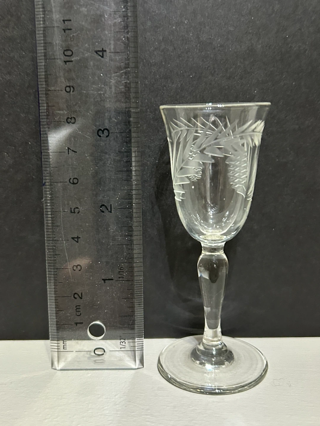 They’re in great condition and would be a lovely addition to your home bar or collection. The etched design is quite detailed and catches the light beautifully. Perfect for serving small portions of your favourite liqueurs. The glass stands approximately 3 1/2 inches tall.