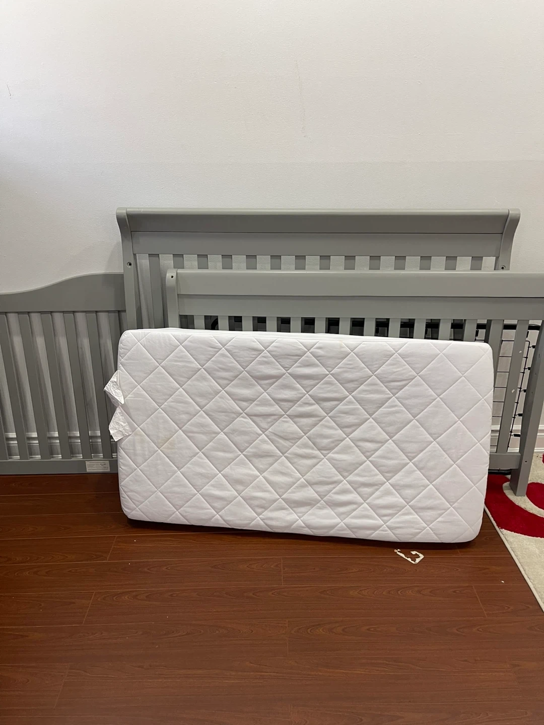 Grey Baby Crib with Mattress