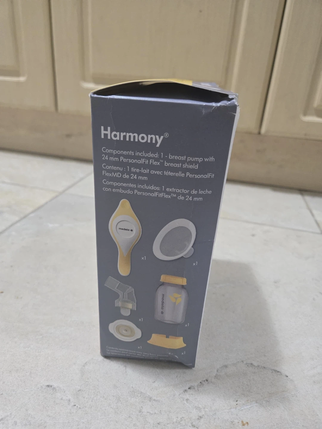 It comes with all the original components, including the breast pump with a 24 mm PersonalFit Flex breast shield. It's light and portable, offering more comfort and more milk. The box is included too!