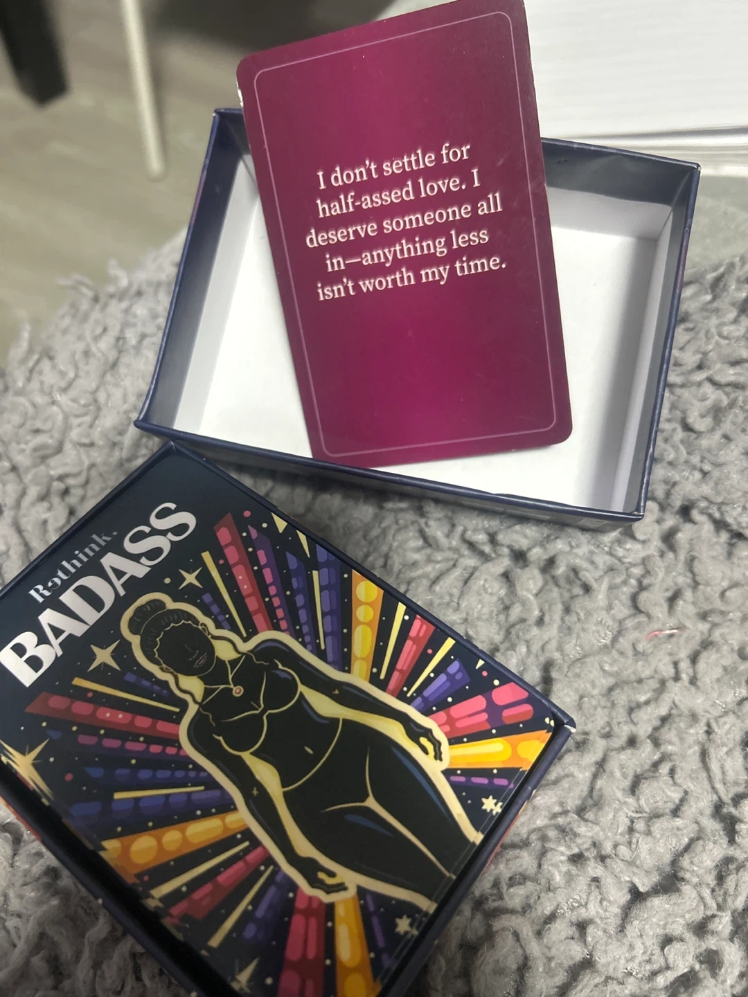 Selling a set of 'Badass Dur A Cuire' affirmation cards for women! These cards are learning flashcards for inner powers. The box is included and the cards are in great condition. Perfect for a little self-love and motivation!