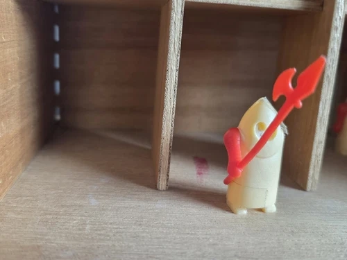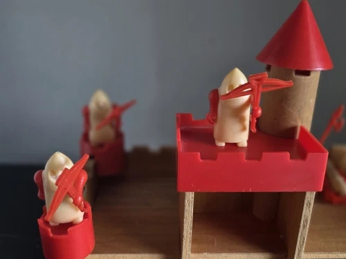 Both the Vintage Epoch Play Castle. It is complete and well played with. The wood is marked up but everything is intact. All the knights and weapons and cannon are included, one of knights is missing an arm. And the Epoch Play House, fully complete and in excellent condition.
