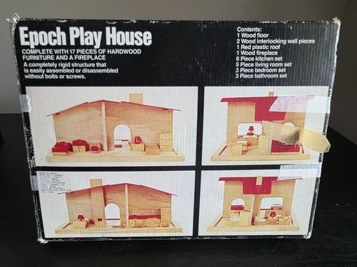 Both the Vintage Epoch Play Castle. It is complete and well played with. The wood is marked up but everything is intact. All the knights and weapons and cannon are included, one of knights is missing an arm. And the Epoch Play House, fully complete and in excellent condition.