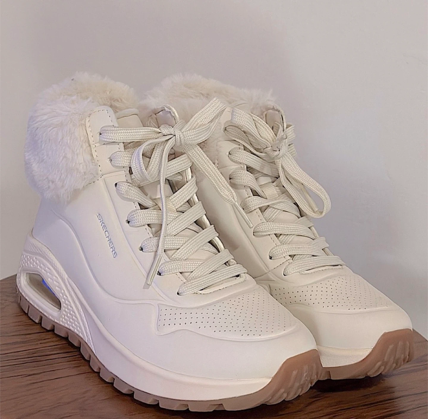 Selling a pair of Skechers Women's Snow Burst boots in size 6. They're a stylish and comfortable option for colder weather. The boots feature a cozy faux-fur trim and a lace-up design. Perfect for adding a touch of warmth and style to your winter outfits!