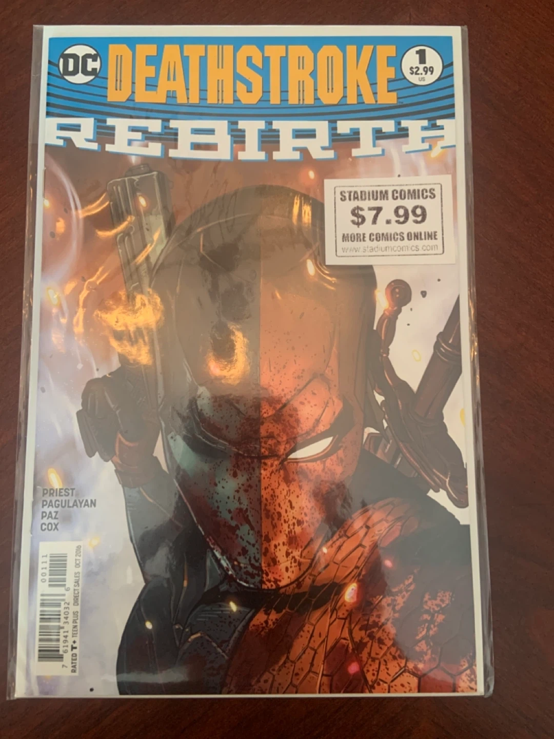 Selling a copy of Deathstroke Rebirth #1 comic book. It's in great condition and comes in a protective sleeve.