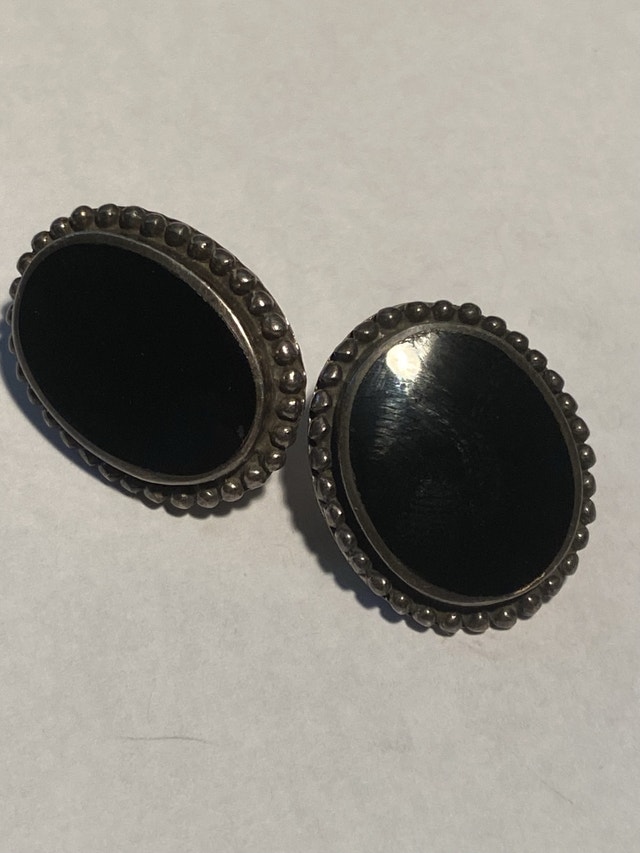 Vintage Sterling Silver/black stone Earrings