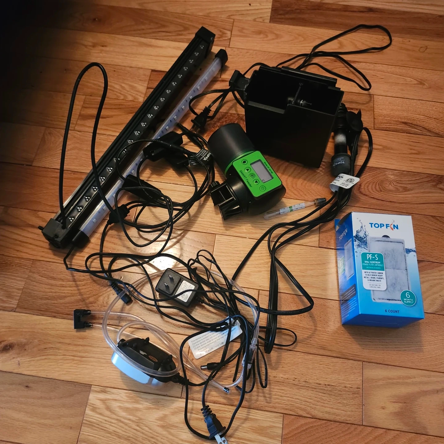 Selling a 20" L x 12" W x 10" H fish tank that comes with a variety of accessories! Included are THREE Top Fin PF-S filters, along with other components visible in the photos. It's all ready to go for setting up your new aquatic habitat.