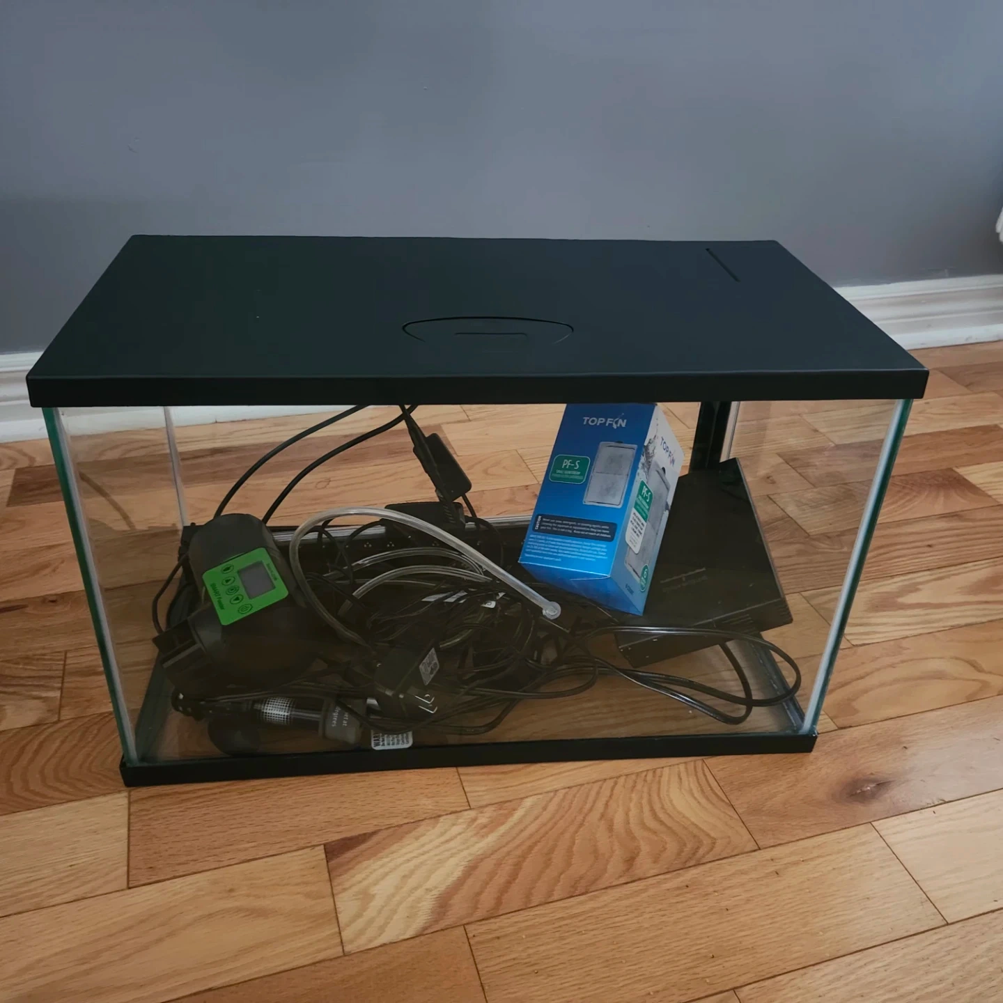 Selling a 20" L x 12" W x 10" H fish tank that comes with a variety of accessories! Included are THREE Top Fin PF-S filters, along with other components visible in the photos. It's all ready to go for setting up your new aquatic habitat.