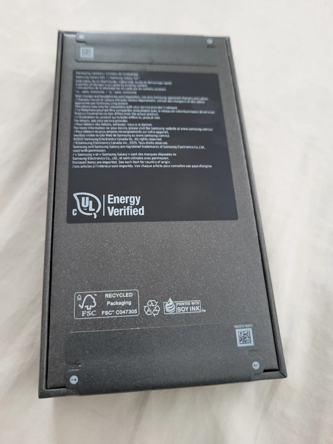 Selling a brand new Samsung Galaxy S25 in Silver Shadow with 128GB of storage! It's still in the box and has never been opened. The model number is SM-S931W. Comes with the box